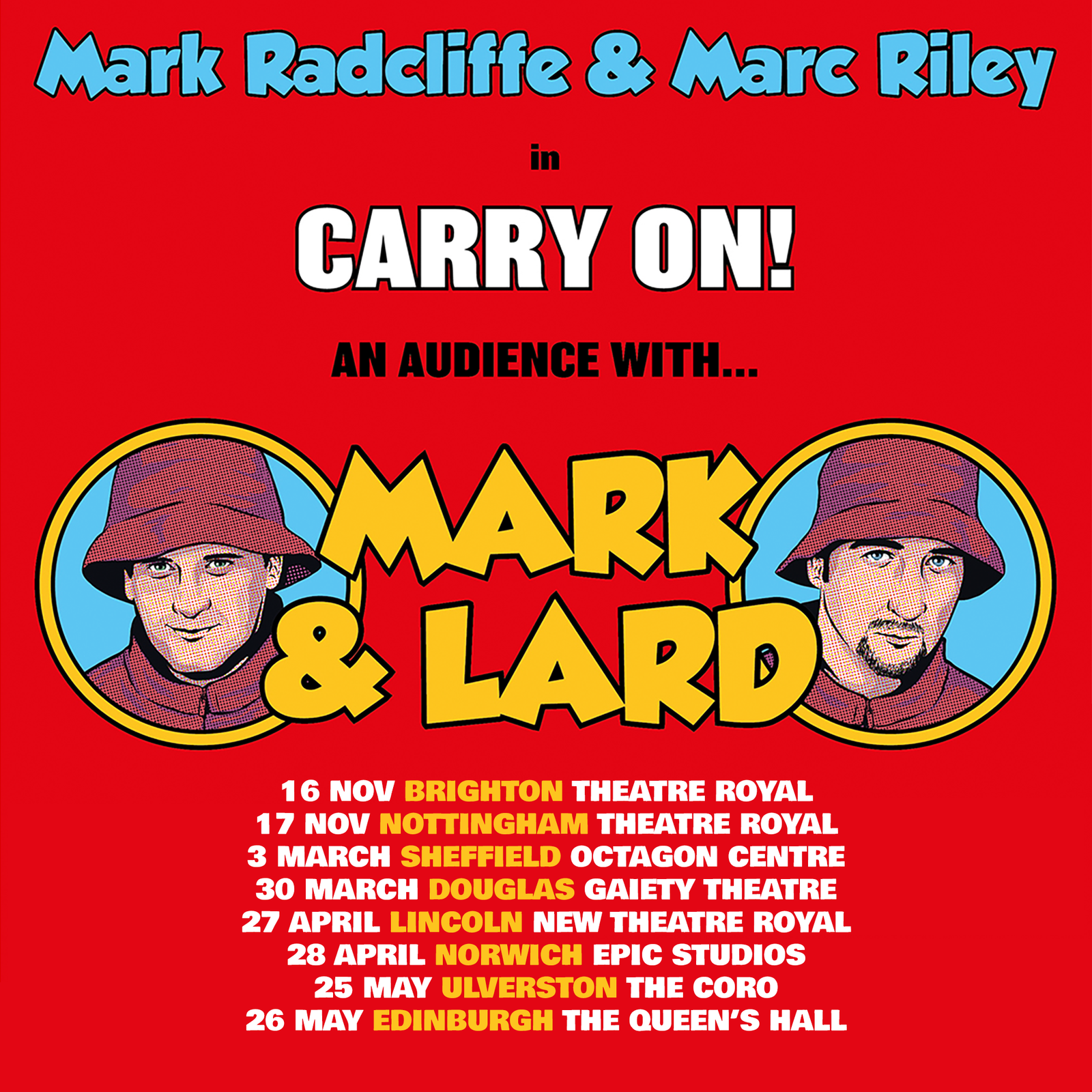 Following the success of 2 sell out shows in Manchester ‘CARRY ON – AN EVENING WITH MARK AND LARD’ is going on tour! The same – sex Krankies of the airwaves will reveal what went on behind the scenes of what Dave Bowie (of the Dave Bowie band) called: ‘THE show’!